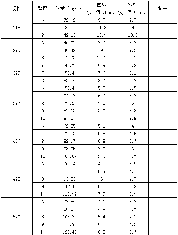 螺旋焊管规格表、理论重量表-GB/T9711-1997